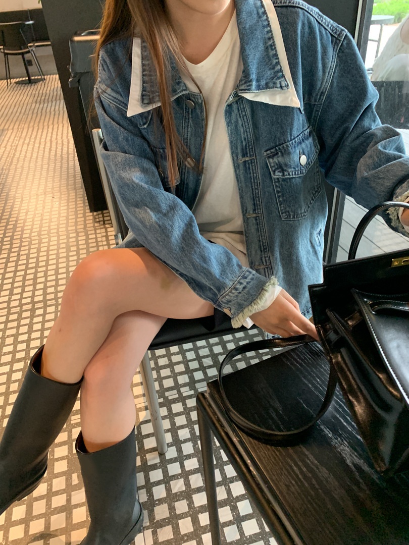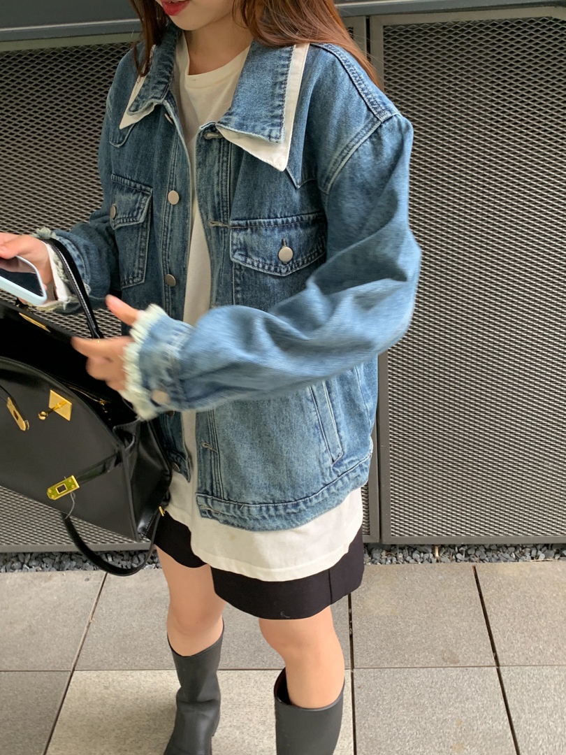 Clashing Color Double Layer Collar Denim Jacket